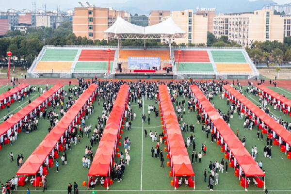 (本网讯 何凯 报道)为深入学习贯彻党的二十大精神,落实党中央、国务院“稳就业”“保就业”决策部署,为毕业生和用人单位搭建双向选择的平台,促进毕业生实现更加充分和更高质量的就业,2月23日,我校2023届毕业生春季大型双选招聘会暨校地校企合作签约仪式在天工校区塑胶运动场成功举行。