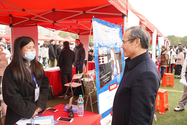 新余市人社局党组成员、副局长刘家迪,学校董事长杨显阳,党委书记、督导专员胡涌,党委专职副书记、纪委书记黄志良,党委委员、副校长刘德华,党委委员、董事长助理、校长助理乐俊杰等领导深入招聘会现场,详细了解参会企业数量、用人单位需求、毕业生薪资待遇等情况,并与用人单位和毕业生亲切交流。