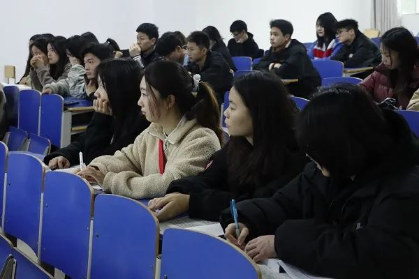 讲课受到了学生的热烈欢迎,学生们认真听和记,现场不断响起热烈的掌声。同学们纷纷表示要深入学习贯彻党的二十大精神,弘扬伟大建党精神,自信自强、守正创新,踔厉奋发、勇毅前行,为学校本科教学工作合格评估贡献力量,为实现中华民族伟大复兴的中国梦而努力奋斗。