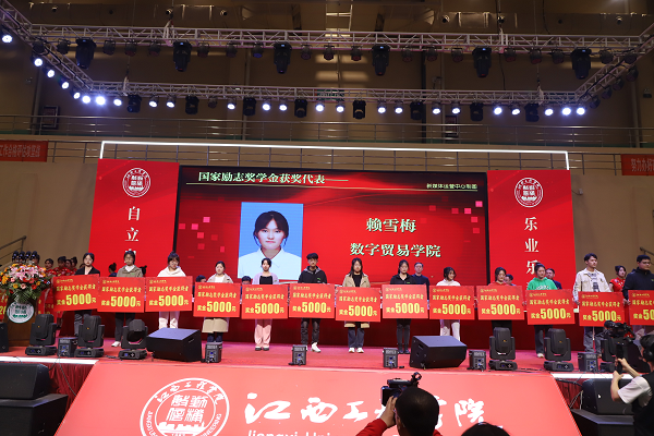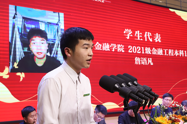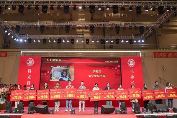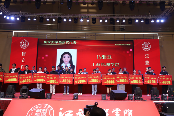 冯赟宣读《关于表彰先进集体和优秀学生的决定》、《关于表彰国家奖学金、励志奖学金、天工奖学金的决定》。