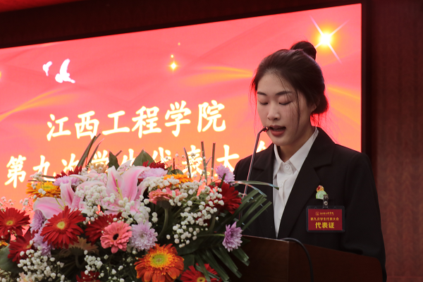 校党委副书记、副校长冯赟代表学校党委作了热情洋溢的讲话,充分肯定了我校青年学子在学校发展建设中作出的积极贡献,表达了学校党委对青年一代的亲切关怀和殷切希望,并对今后一个时期学生会组织工作提出了新的任务和要求,同时向与会代表和全体青年学生提出三点希望:一是要坚定信念、担当使命,做民族复兴的奋斗者,希望广大代表传承好红色基因,始终保持朝气锐气,始终充满奋斗精神,努力成为广大学生的榜样。二是要锤炼本领、提高素养,做勇攀高峰的求索者,希望广大代表传承“江工有爱、爱在江工”优良传统,成为有大爱大德大情怀的人。强化服务意识,创新工作思维,坚持从同学中来、到同学中去。三是要认真履职、自我革命,做躬身笃行的服务者,希望广大代表养成勤于奉献的品性,并将这种情操、本领和品性从学生工作带到平时的日常生活,从学生时代带到未来的工作岗位,让青春在奉献中得到绽放。
