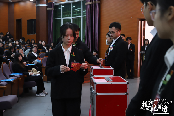 总计票人卢小蝶宣读选举结果,随后第九届学生委员会主席团召开会议,经过会议选举,谢嘉嘉当选为第九届学生委员会执行主席。