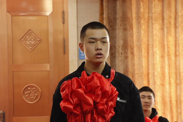 新兵同学们精神抖擞,一身戎装,胸戴红花,整装待发。会后他们将分赴全军各部队,担负起保家卫国的神圣职责。