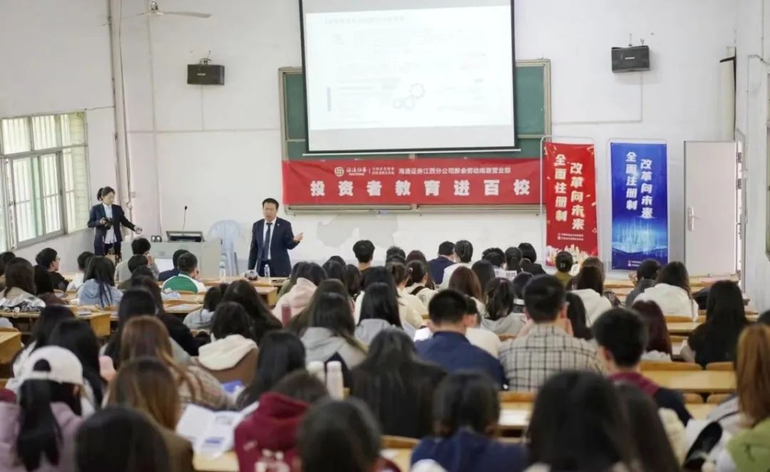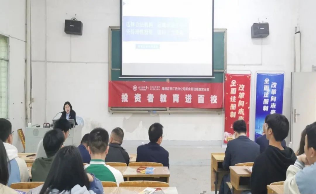 2023年3月14日下午,海通证券新余营业部资深证券投资顾问王煜老师、投教基地负责人严莹老师,应经济管理学院邀请,在文科楼南底楼多媒体教室举办金融实务系列讲座第四期讲座:全面注册制与投资机会解读。由金融工程教研室专业教师车成城主持,专业老师与学生们一起参加了此次讲座。
