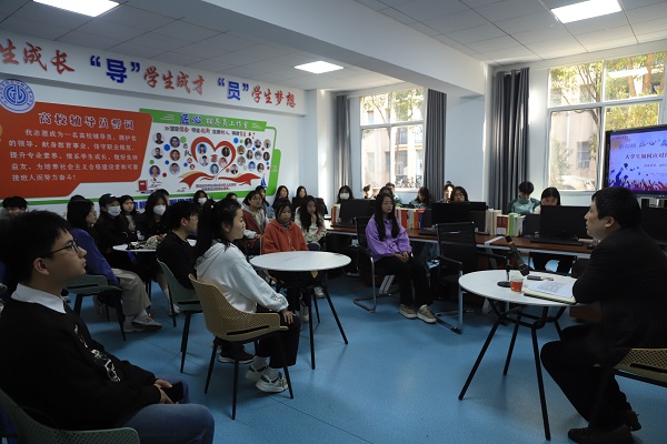 “良好的人际关系是学生成长与社会化过程中的重要组成部分,也是保持良好心理状态的必备条件。然而,由于人际关系、社会的复杂性与学生心理的单纯性,使得我们常常在人际交往中受挫。”黄海军先用一个小话题跟同学们进行互动,迅速活跃现场气氛,又分享了自己在大学时期遇到的一些挫折以及自己应对的方式,让同学们产生共鸣,引出会议主题——如何应对压力和管理情绪。