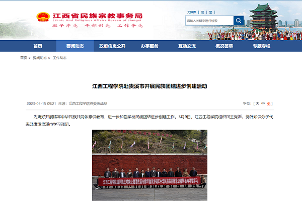 为更好开展铸牢中华民族共同体意识教育,进一步加强学校民族团结进步创建工作,3月9日,华亿平台组织民主党派、党外知识分子代表赴鹰潭贵溪市学习调研。