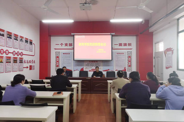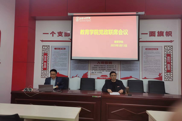 2023年3月13日,教育学院召开党政联席会议,会议由教育学院党支部书记、院长晏小庆主持,学院党支部副书记刘永东、副院长林艳、办公室主任吴思静及各教研室主任等党政干部参加会议。