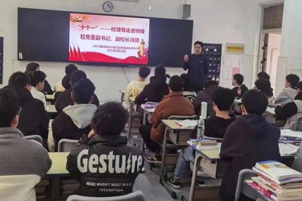 2023年2月24日,校党委副书记、副校长冯赟深入智能制造与能源工程学院学生社区开展“十个一”联系活动。冯赟通过走访调研,贯彻落实“十个一”联系基层制度。“面对面,心贴心”了解同学们学习生活情况,给同学们加油鼓劲并听取学生对学校的意见和建议。