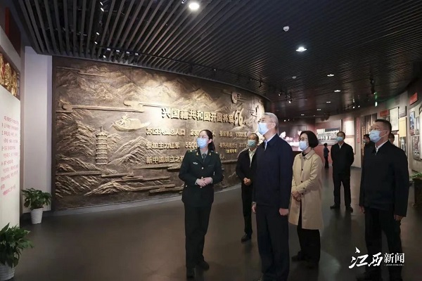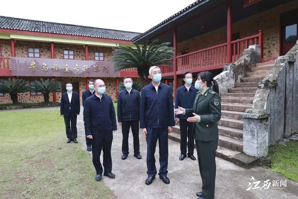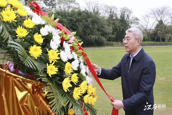 古樟葱茏、松柏挺拔,瑞金叶坪红军烈士纪念塔巍峨耸立。清明节即将来临,尹弘怀着无比崇敬的心情向革命烈士敬献花篮并深深三鞠躬,表达对革命烈士的无限哀思。随后,尹弘瞻仰了中央苏区旧址、“一苏大”会址,深刻感受红色政权来之不易、新中国来之不易、中国特色社会主义来之不易。在沙洲坝红井,尹弘舀上一瓢甘泉细细品味,听一段耳熟能详的红井故事。兴国走出了56位开国将军。在兴国县将军馆,尹弘聆听革命先辈的初心故事,追忆革命先辈的丰功伟绩。尹弘指出,江西是一片充满红色记忆的红土地。我们要从党的光辉历史中不断汲取养分,饮水思源、不忘初心,努力在新征程上挖更多的“红井”、办更多的实事,为老区人民创造更加美好的生活。