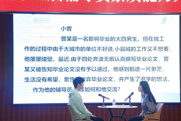 本次活动由党委学生工作部举办,学校党委副书记、副校长冯赟,学工系统全体人员和所有专职辅导员观摩了比赛。本次大赛共分为基础知识测试、谈心谈话、案例研讨三项比赛环节。