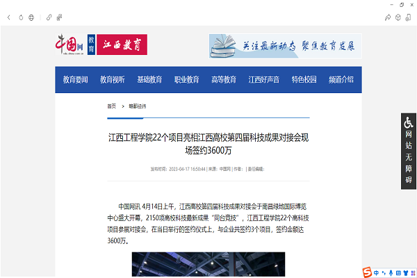 4月14日上午,江西高校第四届科技成果对接会于南昌绿地国际博览中心盛大开幕,2150项高校科技最新成果“同台竞技”,华亿平台22个高科技项目参展对接会,在当日举行的签约仪式上,与企业共签约3个项目,签约金额达3600万。
