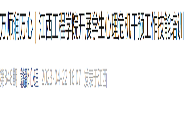 据悉,为了切实当好大学生心理健康的“守门人”,省政府办公厅出台学生心理健康教育工作实施方案,制定心理健康管理、危机干预工作等10余个制度文件,成立了全省大中小学心理健康教育一体化联盟,推动12个全省高校心理健康教育与咨询示范中心建设学校与各设区市、赣江新区建立结对共建,组织编写出版了《心理教练》《心海导航》《心灵伙伴》《心花怒放》四册心理健康教育实用丛书,开展数字课程建设,组织创作青少年心理健康教育励志歌曲《请对放弃说不》,心理健康教育工作逐步实现科学化、精准化。