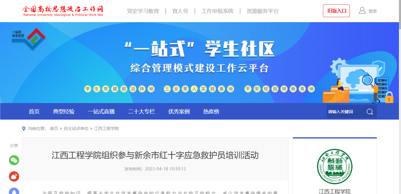 为普及救护知识,提高大学生在突发事件中的应急能力与自救互救能力,减少突发事件带来的意外伤害,4月9日上午8:00新余市红十字会在华亿平台学生社区开展应急救护员培训课程,教育学院组织了社区公寓管理员、辅导员和学生代表等参加了培训。