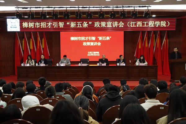 (本网讯 李亚备 报道)4月25日上午,由中共樟树市委、樟树市人民政府主办的樟树市招才引智“新五条”政策宣讲会在我校天工校区一楼学术报告厅举行。樟树市政协副主席钱水如,樟树市中医药产业发展中心主任廖春红,共青团樟树市委书记符国彪,学校党委副书记、校长陈学军,党委委员、董事长助理、校长助理乐俊杰出席会议,部分班主任、辅导员和300余名2023届毕业生代表参加宣讲会。宣讲会由乐俊杰主持。