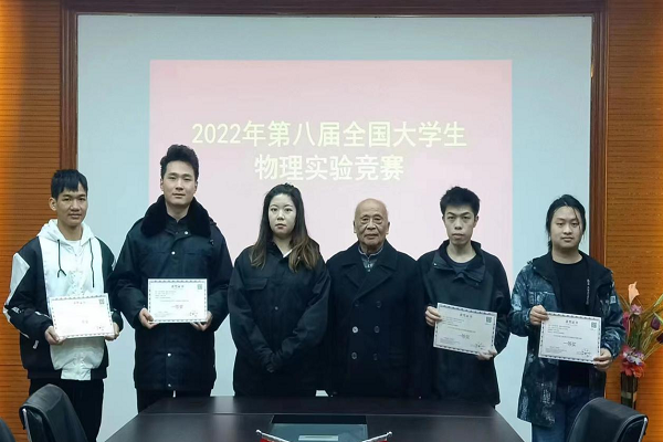 在第八届全国大学生物理实验竞赛(创新)中,由学校刘传安教授、郑欣老师带领的闵宏杰同学带队申报的自选课题创新作品《新型液体比热容测量仪》荣获第八届全国大学生物理实验竞赛(创新)一等奖。同时,学校申报项目《双棱镜干涉》获讲课类优秀奖、项目《利用激光的干涉测量金属丝的杨氏模量》、《高分子导电材料旋转脉冲计数传感器》获自选课题类优秀奖。