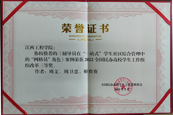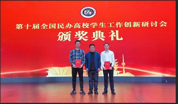 在研讨会上,联席会举行颁奖典礼对2022、2023年民办高校学生工作创新奖进行了表彰,其中,我校学生工作部李小力撰写的《“一站式”学生社区赋能新时代思政教育工作高质量发展》案例荣获2023全国民办高校学生工作创新奖二等奖,专职辅导员周文撰写的《辅导员在“一站式”学生社区综合管理中的“网格员”角色》案例荣获2022全国民办高校学生工作组织改革三等奖。