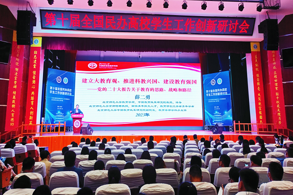 为贯彻落实党的二十大精神,落实“以学生为中心”的教育理念,加强典型经验和创新举措的交流,5月11-12日,由全国民办高校联席会主办的第十届全国民办高校学生工作创新研讨会在湖北武汉举行,全国20余个省市的120多所高校300余名民办高校工作者参会。我校学生工作部副部长周卫忠,电子信息工程学院专职辅导员周文参会。