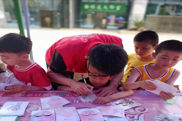 炽热的骄阳却依旧抵不过同学们一颗颗感恩的心,活动现场,同学们踊跃报名,积极响应,在贺卡上写下对母亲的祝福,“妈妈我爱您!”“妈妈您辛苦了!”“妈妈节日快乐!”等,一句句简单的话语却是同学们心底对妈妈深深的爱意。