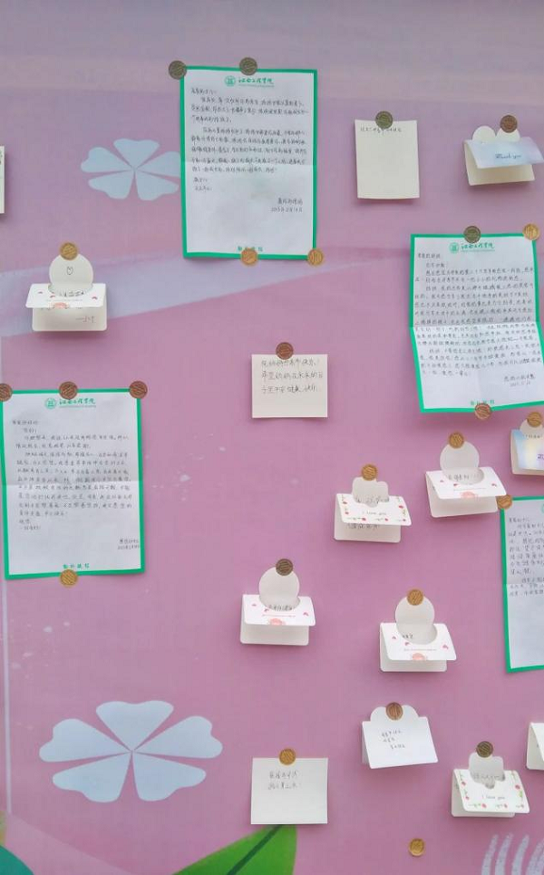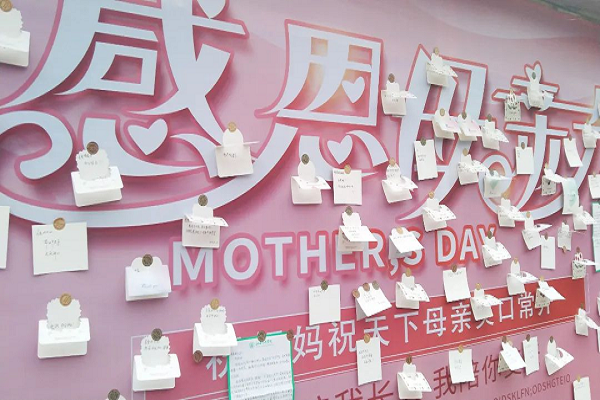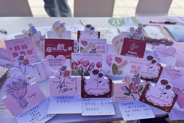 一个爱心,一幅画…每一份都是对母亲的爱。“妈妈,节日快乐,身体健康,万事顺遂!”虽然只有短短的几个字,但字里行间处处充满着对母亲的爱。除此之外,学校还贴心地为同学们准备了信纸以及信封,方便同学们邮寄。