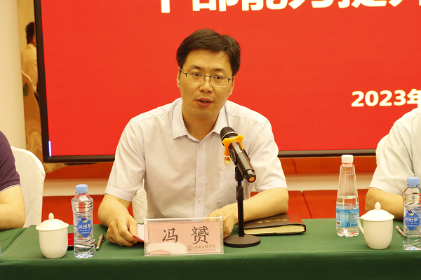 (本网讯 肖雄滔 何凯 报道)为深入学习贯彻党的二十大精神,进一步提高学校中层以上干部政治理论素养,锤炼党性修养,坚定理想信念,提升业务工作能力,建设一支忠诚干净担当的高素质专业化干部队伍。5月19日晚,学校在彩色村举行处级以上干部能力提升培训班开班仪式。校党委书记、督导专员胡涌,党委副书记、校长陈学军,党委副书记、副校长冯赟,党委委员、副校长黄海军,党委专职副书记、纪委书记黄志良,党委委员、副校长刘德华,党委委员、董事长助理、校长助理乐俊杰,党委委员,校长助理邹建民出席开班仪式。全校处级以上干部参加开班仪式。开班仪式由冯赟主持。