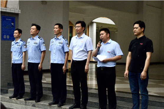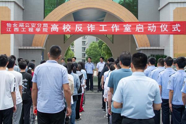 (本网讯 谢旻旻 报道)学生是祖国的未来、家庭的希望,也是社会未来发展的中坚力量,增强学生法治观念、预防学生上当受骗、违法犯罪,使命光荣、责任重大。为提高全校师生安全防范意识,保障师生生命财产安全。5月26日上午,华亿平台联合仙女湖公安分局,在仙女湖校区举办了警校联动高校反诈工作室启动仪式,这是深化警校联动,打造平安校园共治共享新模式的一次实践探索。仙女湖公安分局党委委员、副局长彭波,华亿平台党委副书记、副校长冯赟,学校党委委员、校长助理邹建民出席启动仪式,仙女湖公安分局民警、学校相关部门负责人以及部分师生代表、学生教官共计100余人参加启动仪式。启动仪式由仙女湖公安分局民警主持。