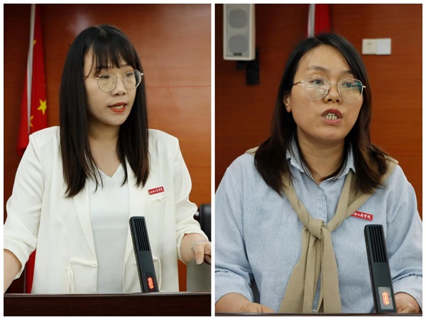 数字贸易学院吴娟老师和外语外贸学院王珊珊老师代表全体学员做了表态发言。
