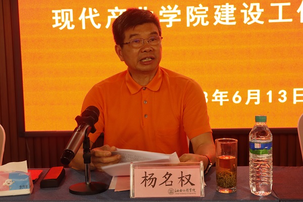 杨名权董事强调,现代产业学院建设核心是“产教融合”,打造产教融合创新高地,要深入贯彻落实全国教育工作会议精神,促进教育链、人才链与产业链、创新链的有机衔接,各教学院要探讨新时代现代产业学院建设与发展路径,努力培养符合产业需要的高素质应用型人才。
