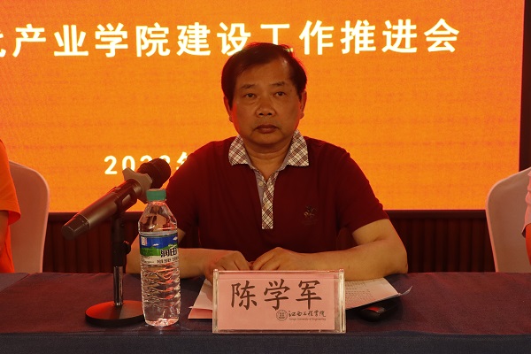 为进一步加强我校现代产业学院建设,充分发挥现代产业学院在本科人才培养中的作用,促进产学研深度融合,全面提升人才培养的质量。6月13日上午,我校在凤凰湾度假村主楼会议室召开现代产业学院建设工作推进会。校党委副书记、校长陈学军,学校董事杨名权,党委委员、副校长刘德华,党委委员、校长助理邹建民出席会议,各教学院(部)院长(主任)、副院长(副主任),各职能部门负责人、骨干教师等120余人参加了会议,会议由陈学军主持。