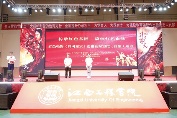 为传承红色基因,赓续红色血脉,加强党性教育,6月21日上午,我校组织600余名师生,在学校体育馆集中观看红色电影《井冈星火》。新余市委宣传部常务副部长刘文冰,校党委副书记、校长陈学军,党委副书记、副校长冯赟出席活动。电影《井冈星火》的主创人员来到现场,与师生分享电影摄制心得与幕后故事,为青年学子分享了一道丰盛鲜活的红色精神大餐。