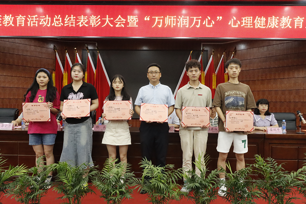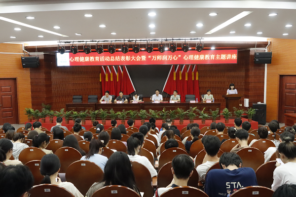 (本网讯 熊小红 报道)6月20日下午15:00,我校在天工校区学术报告厅一楼举办心理健康教育活动总结表彰大会暨“万师润万心”心理健康教育主题讲座,校党委副书记、副校长冯赟出席本次活动,学生工作处处长陈居权及相关工作人员,学校心理健康教育与咨询中心主任晏双平、各二级心理辅导站站长、全体辅导员(班主任)、班级心理委员、宿舍心理联络员及获奖代表300余人参加活动。