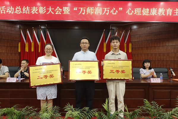 本次活动分为两部分,第一部分为心理健康教育活动总结表彰大会,首先由校心理健康教育与咨询中心主任晏双平作2023年上半年心理健康教育活动总结报告。晏主任分别从万师润万心心理健康教育大行动、“学校-学院-班级-宿舍”四级心理健康教育,心理健康测评和危机事件干预处置“一站式”学生社区心理辅导中心开放日活动和“5·25”心理健康教育月系列活动等方面进行全面总结学校心理健康教育活动,并提出了下一步要改进和加强的地方。