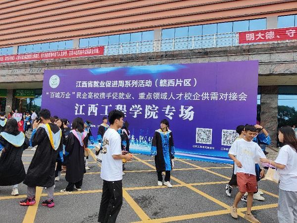 (本网讯 李福涛 报道)高校毕业生就业工作事关高质量发展、民生福祉和社会稳定,党中央、国务院和省委、省政府高度重视高校毕业生就业工作。习近平总书记先后在中央政治局会议、中央经济工作会议等会议上作出重要部署,作出系列重要指示批示,强调要把促进青年特别是高校毕业生就业工作摆在更加突出的位置。为深入贯彻落实党的二十大精神和党中央、国务院关于就业的决策部署,落实“就业优先战略”,我校于2023年6月26日上午举办“江西省就业促进周系列活动(赣西片区)“百城万企”民企高校携手促就业、重点领域人才校企供需对接会华亿平台专场”招聘会。
