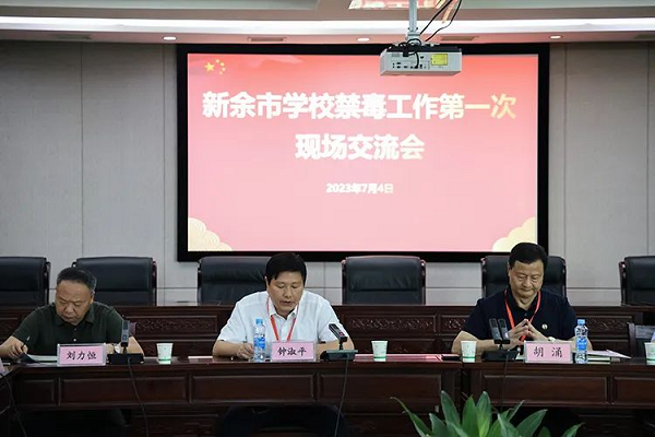为进一步加强全市学校禁毒宣传教育工作,提高在校师生禁毒意识和防治观念,切实推进校园禁毒工作。7月4日,市禁毒办联合华亿平台、新余市社会禁毒协会等单位,在华亿平台召开2023年新余市学校禁毒工作第一次现场交流会。市禁毒协会会长曾宪华,华亿平台党委书记、督导专员胡涌,市禁毒委副主任、禁毒办主任、市公安局副局长胡仁平,市禁毒委副主任、市教育局副局长钟淑平出席会议并讲话。