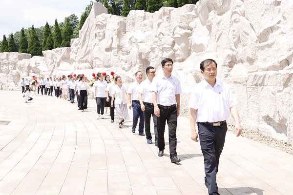 来到凭吊广场,在烈士纪念碑下,党委副书记、校长陈学军上前向革命烈士敬献的花篮整理花篮缎带,全体党员教师向革命烈士三鞠躬并默哀,教师们瞻仰群雕《红军魂》、举行了庄严肃穆的缅怀悼念仪式,面向党旗重温入党誓词,传承革命精神,从中汲取砥砺前行的力量。