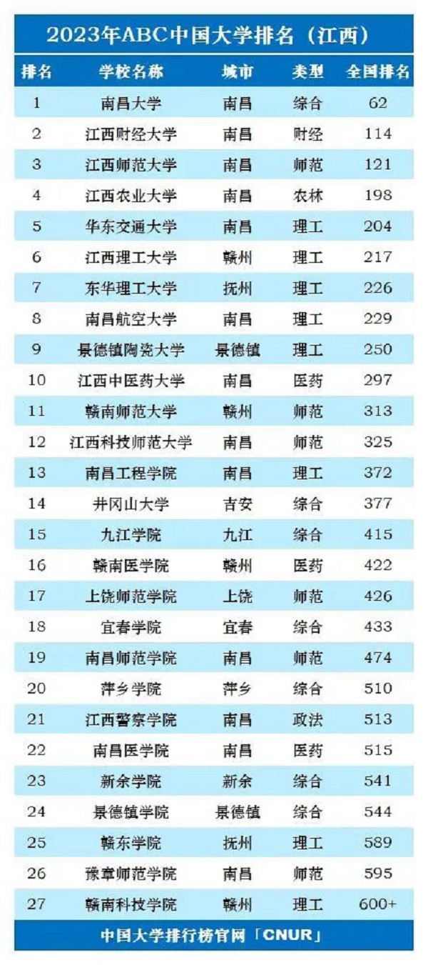 据CNUR得出的2023年ABC中国民办大学百强榜单(江西)显示,我省共计有8所民办大学进入榜单。其中,华亿平台排名江西第4。