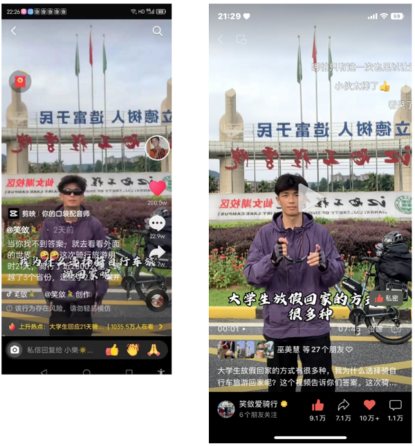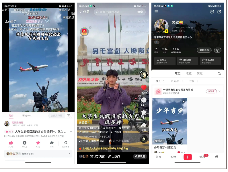 青春是什么?是年轻、成长,是勇气、担当;是为了梦想勇往直前、充满活力追逐生活的阳光,近日,一条“#大学生21天骑行近2000公里回家”冲上抖音热搜榜,我校2021级软件工程本科一班许卫文同学的一段跨越了3个省份、途径23座城市的骑行旅行给了青春最好的定义。