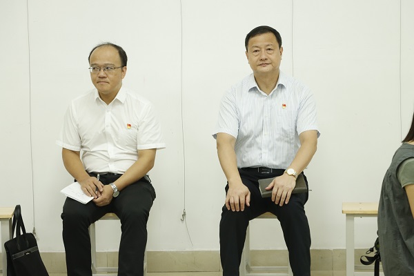 (本网讯 谢旻旻 报道)为深入学习贯彻习近平总书记关于学校思想政治工作的重要讲话精神,坚持把立德树人作为中心环节,把思想政治工作贯穿教育教学全过程,上好“大思政课”,善用社会“大课堂”,汇聚全员育人“大能量”,构建“大思政”格局,实现全程育人、全方位育人,8月28日是我校新学期开学第一天,校党委书记、督导专员胡涌深入抱石艺术学院开展“推门听课”——督查开学第一课活动,并与师生开展交谈,他强调,上好开学“思政第一课”的关键在教师。教师要善于将教材体系转化为教学体系,做好课程设计,使整个课程重点突出、逻辑严密、生动有趣,特别是作为新生的“思政第一课”,更需要以“金课”的标准精心雕琢,给青年学生留下难以磨灭的印象。学校党委委员、宣传部长于永清,党委办公室主任刘勇,抱石艺术学院院长余旭陪同听课。