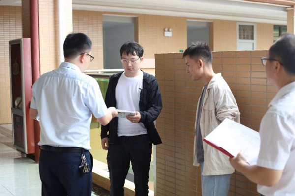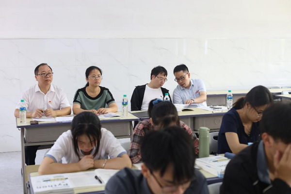 上午10点,董事长杨显阳、于永清、巢喜剑来到教学楼,对教师到岗上课情况、学生出勤情况、课堂教学秩序、教室环境等进行了全面检查,确保师生上好新学期第一堂课,保证开学期间的安全稳定。随后,杨显阳董事长走进C栋510教室听取了陈聪老师所授《大数据算法分析与设计》课程,认真观摩教师的教学方法,观察学生的课堂反应,并详细记录听课情况。