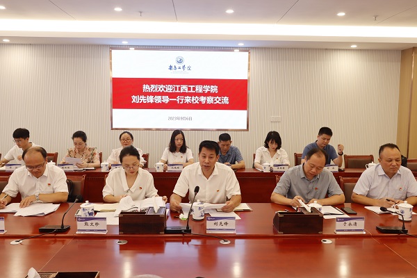 在南昌工学院学习考察交流期间,双方就构建高校高质量党建工作体系展开深入探讨。座谈会上,刘先锋介绍了我校基本情况,学习考察组成员就党建工作的特色与优势、难点与问题、党建联建机制进行了充分交流,学习借鉴了许多好的做法。南昌工学院副董事长、党委副书记、副校长、纪委书记陶也青对刘先锋一行的到来表示热烈欢迎,并以交流和播放学校宣传片形式,向大家详细介绍了该院发展沿革及近年来在党建工作中取得的主要成果。刘先锋对陶也青给予本次学习考察交流的支持表示感谢,对南昌工学院党建工作的亮点与取得的成绩表示钦佩与赞赏。