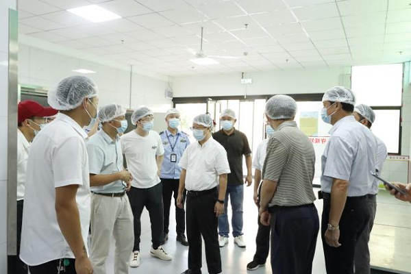 (林坤部长在学校领导等人的陪同下参观了仙女湖校区学生食堂)
