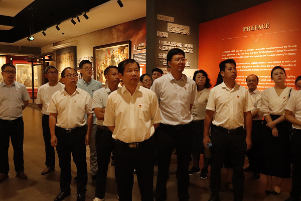 “我志愿加入中国共产党,拥护党的纲领,遵守党的章程,履行党的义务,执行党的决定……”活动中,陈学军带领全体党员在罗坊会议纪念馆序厅一道举起右手,重温入党誓词、回望初心使命。面对庄严的党旗,一句句铿锵有力的宣誓声回荡在大厅,回响在党员心中,进一步增强了全体党员作为共产党员的荣誉感、责任感和使命感。