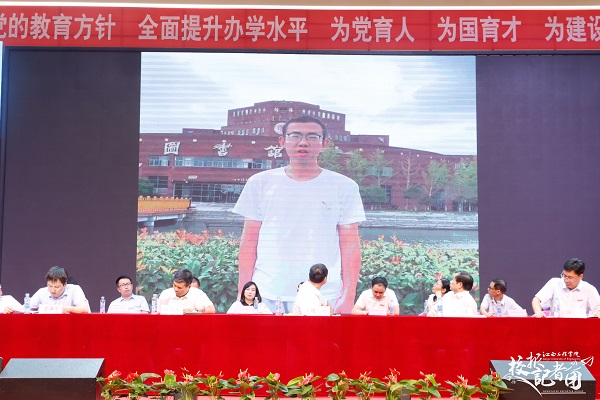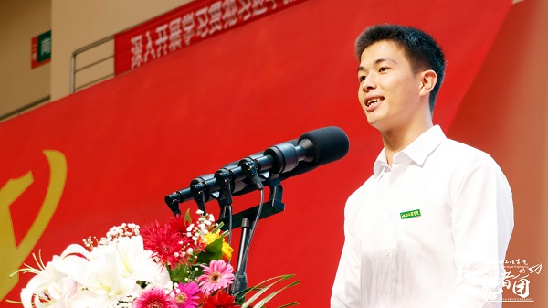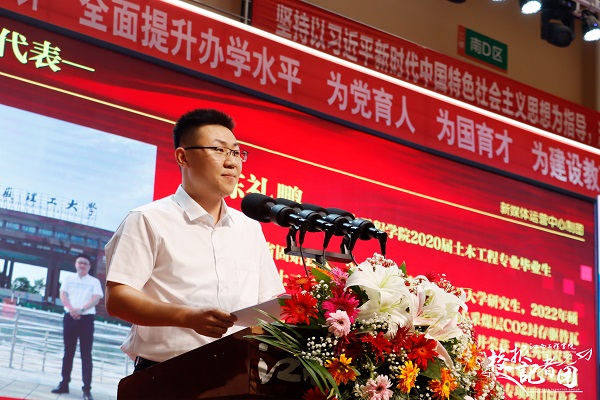 优秀校友代表、2020届土木工程学院土木工程专业毕业生陈礼鹏向同学们分享了自己在江工的四年求学经历和工作历程。希望同学们在未来四年里要如饥似渴地学习专业知识,秉承“勤朴敏信”校训和“自立自强、乐业乐群”的学校精神,坚持“时时念危机,天天求发展”的理念,怀揣优秀的品质,以“勤朴敏信”的校训作为前进的指南针,共同迎接未来的挑战,创造属于自己的精彩故事。