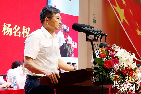 杨名权董事代表校董事会,向来自全国各地的新同学表示最热烈的欢迎!向受到表彰的同学表示最热烈的祝贺!他指出,迈进大学的门槛,意味着打开了新的人生大门、迎来了新的人生际遇。正确的人生观要在这里树立,合理的知识结构要在这里构建,就业、创业的本领和技巧要在这里掌握,做人的奥妙道理要在这里领悟,坚毅的意志品格要在这里磨砺。今日之江工,已经成为青年学子求学深造的理想胜地: