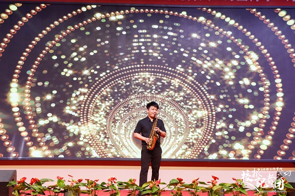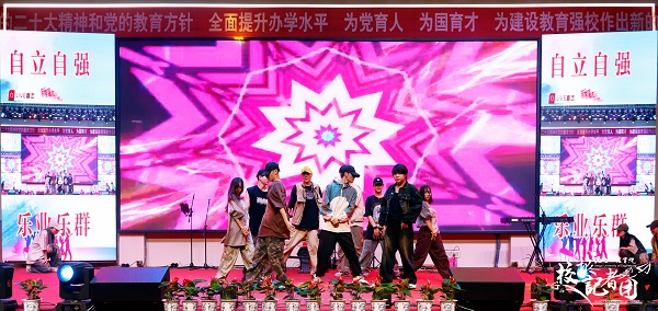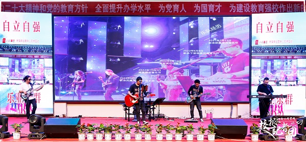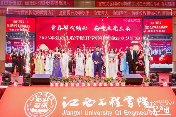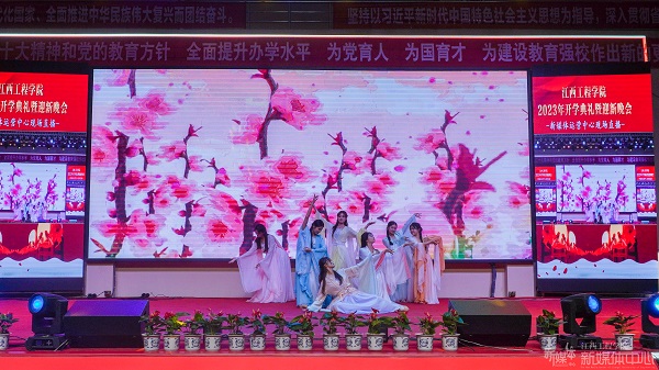 随后,大型文艺汇演将开学典礼的氛围推向高潮。校园文化中心、激情江工街舞社团带来的开场舞《青春有我定义》热情洋溢、燃情四射,充分调动了现场的气氛。新余市音乐家协会资深音乐人的五正乐队演唱歌曲《鼓楼》和《海阔天空》,节奏叩人心扉,歌词饱含思考和感慨;旋律入心,歌词深邃动人,让人陶醉其中。校园文化中心、动感江工拉丁社团表演的国标舞《show time》,衣袂飘飞,舞姿轻盈。