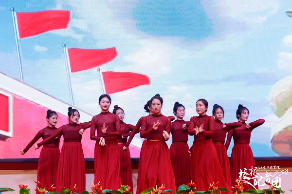 《等待》《七仙女下凡传说》《山歌年年唱春光》《hot girl》《新不了情》《奋斗的青春》等表演,活力满满、热情洋溢,使现场的气氛达到高潮。教育学院带来歌舞表演《万疆》,舞姿飘逸,展现祖国大好河山和历史魅力。教育学院、天工朗诵团朗诵《蜡炬成灰薪火传》,表达了对前辈的敬佩以及传承他们的精神,为祖国而奋斗。