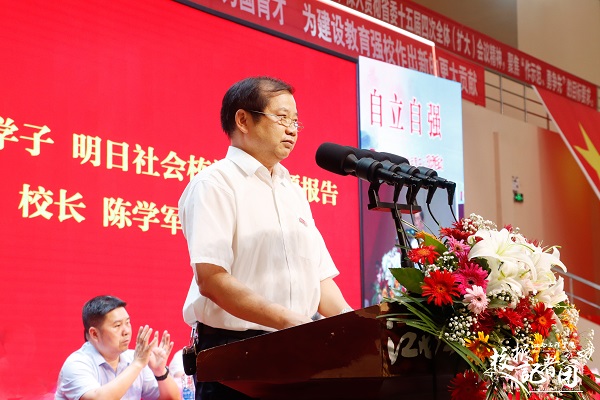 四是在实干笃行上下功夫,做肯奋斗的新时代好青年。全面建设社会主义现代化国家,是一项伟大而艰巨的事业,迫切需要广大青年以舍我其谁的精神状态艰苦奋斗、奋勇拼搏,以青春之力谱写中国式现代化的崭新篇章。每一个人成功的背后,都曾留下大量的汗水;每一项创新成果的出现,往往都以无数的失败奠基。希望同学们以学校先进典型为榜样,形成“比、学、赶、超”的良好氛围,自立自强,乐业乐群。