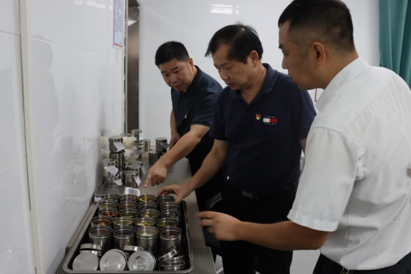 陈学军校长一行实地走访了中心食堂的食品检测间、食品留样间、用餐区等工作区域,对配餐人员身体健康、食品贮存及使用、加工操作规范、餐饮器具清洗消毒、明厨亮灶工作等情况进行现场检查,详细了解学校食堂的卫生安全、饭菜种类、服务质量,重点检查了食堂食品安全管理措施落实情况。