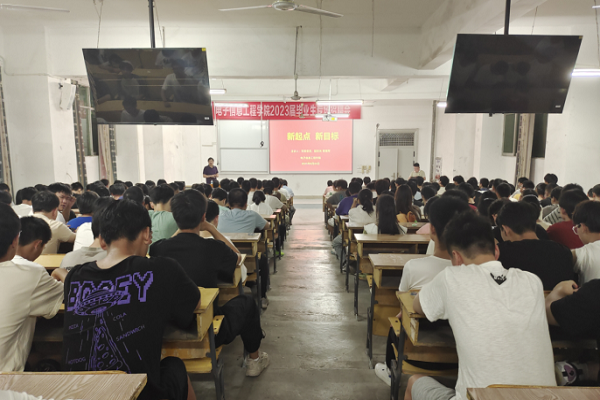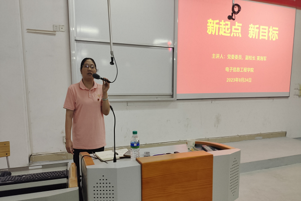 惜别夏花绚烂,喜看秋高气爽。新学期,新同学,朝气蓬勃,斗志昂扬。为了帮助同学们尽快熟悉新生活、适应新环境,转变新角色、开好新征程。9月24日晚,党委委员、副校长黄海军深入电子信息工程学院开展“新起点 新目标”主题讲座,讲座由电子信息工程学院党总支书记陈小华主持,电子信息工程学院全体新同学在C栋106教室认真聆听。