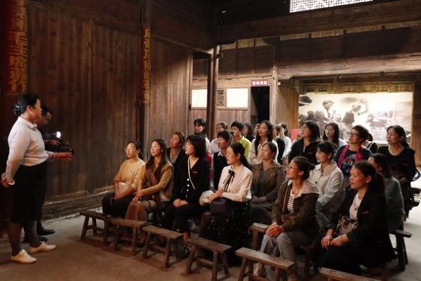 (本网讯 黄琴 报道)为深入开展学习贯彻习近平新时代中国特色社会主义思想主题教育,进一步教育引导党员赓续红色血脉,强化学校女干部、女党员、女教师政治素养,厚植家国情怀,10月13日下午,校妇联组织女教职工赴上海劳动妇女战地服务团旧址(渝水区珠珊镇)开展红色实践教育。