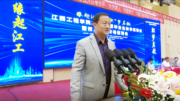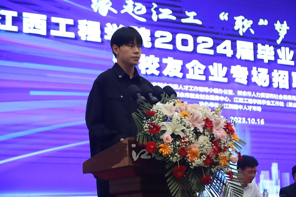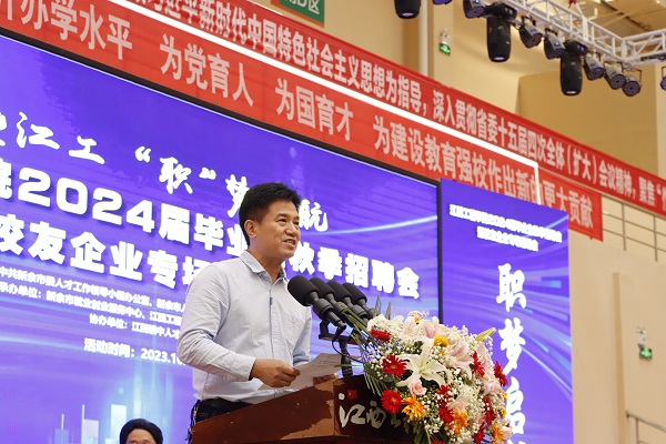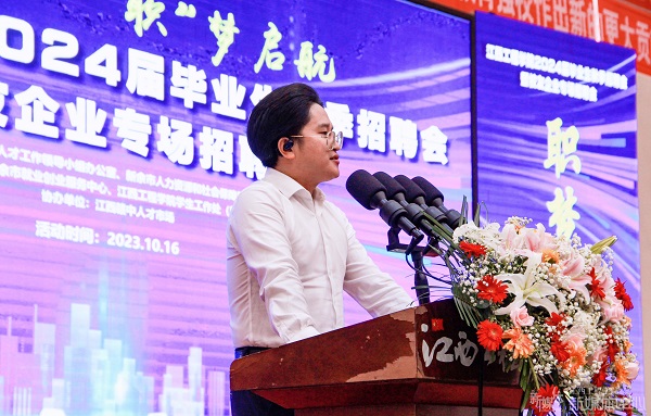 党委书记、督导专员胡涌宣布2024届毕业生秋季双选招聘会开始。